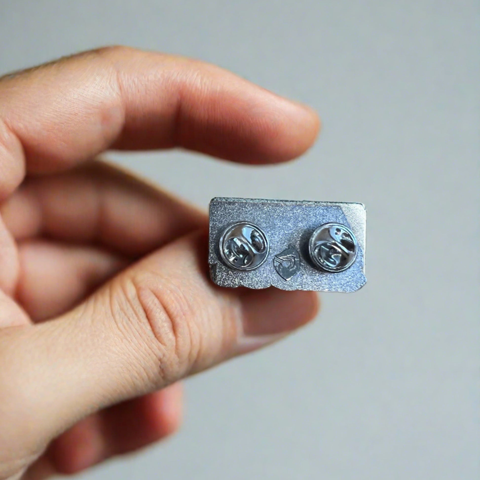 Anti Shoot Pin Badge (35mm) hard enamel with engraved logo on reverse side and two butterfly clasps.