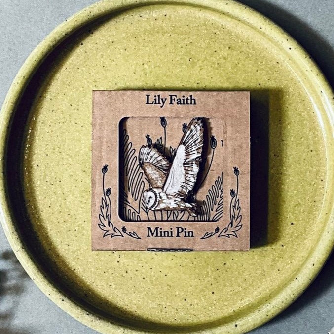 Small but perfectly formed, these brooches are laser cut and engraved in Lily Faith’s studio using her own illustrations, and are intricately hand painted using light fast paint. With a simple brooch fastening on the back.