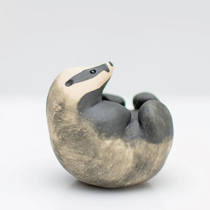 Hand crafted ceramic badger figure by artist Sarah Brabbin.